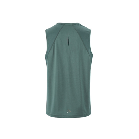 Edistyksellinen hihaton treeni-t-paita kierrätetystä polyesteri- ja elastaanijerseystä, jossa on verkko-osia ja rei'itettyjä yksityiskohtia ilmanvaihdon tehostamiseksi. Sopii useimpiin intensiivisiin aktiviteetteihin.